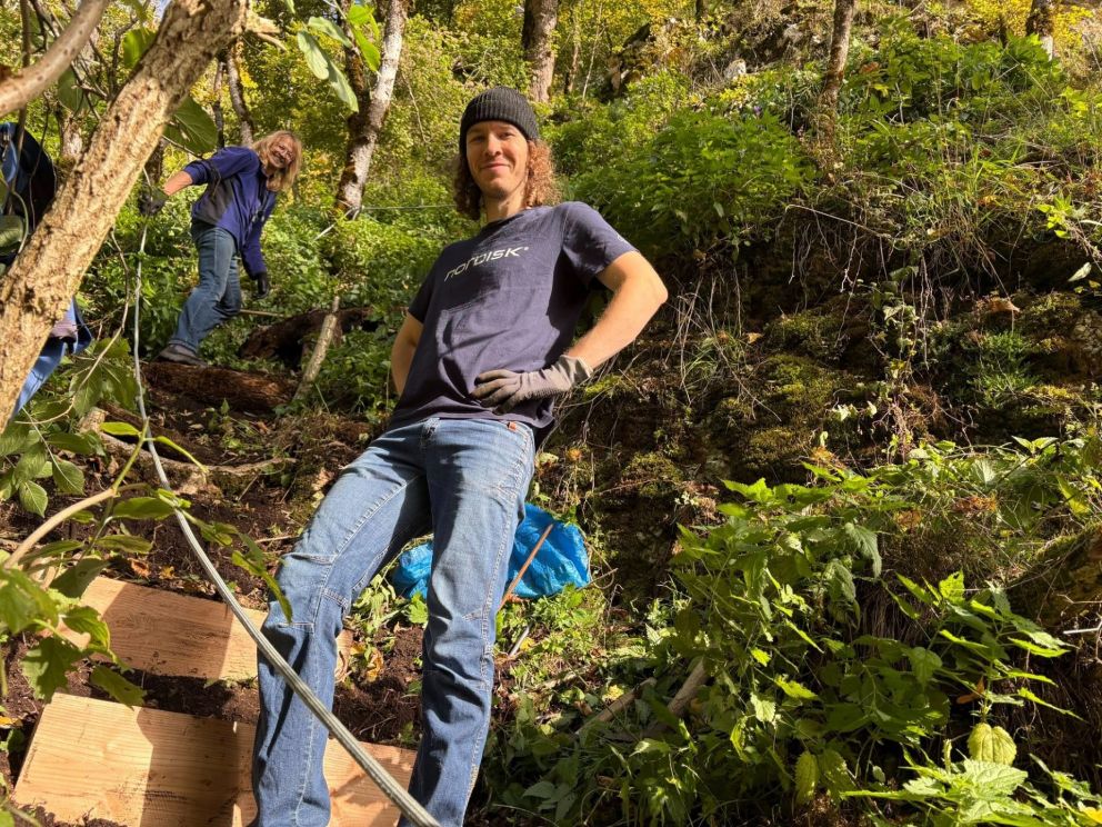Im Fokus standen unter anderem die Allgemeinverfügung zur Schutzzeit des Uhus, eine mögliche Freigabe weiterer Kletterfelsen, die Erschließung neuer Touren sowie die Sanierung bestehender Routen.Wir als IG haben uns außerdem dazu entschlossen, am sogenannten „Uhuverhör“ 2026 mitzuwirken – denn der Naturschutz und die im Däle beheimateten Tiere liegen uns ebenso am Herzen wie das Klettern selbst. Auch das Sperren einzelner Routen, wenn beispielsweise ein Vogel (unabhängig von der Art) in einem großen Griff brütet, gehört für uns zum verantwortungsvollen Umgang mit der Natur – selbst wenn keine rechtliche Verpflichtung dazu besteht.Mit dem Erscheinen des neuen Kletterführers, der voraussichtlich im Frühjahr 2026 veröffentlicht wird, dürfen sich alle freuen, die gerne Neues ausprobieren. Seit der letzten Auflage hat sich einiges getan: Neue Sektoren, Touren und Varianten sind hinzugekommen. Und mit dem Kauf des Führers unterstützt ihr direkt die Finanzierung unseres Hakenmaterials – danke dafür!Mit all diesen Neuigkeiten im Gepäck gingen wir am Freitagabend zufrieden nach Hause, um am folgenden Tag pünktlich den diesjährigen Wegebau durchzuführen.Drei Trupps wurden auf den neuen Sektor am Dachstein, den Schaufelsen und den Aussichtsfelsen verteilt.Bewaffnet mit Holzstufen
